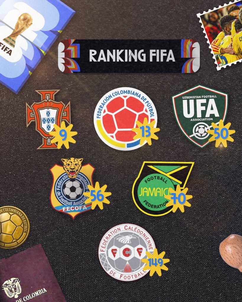 –MUNDIAL (1). Grupo K: Portugal, Colombia Uzbekistán, repechaje Nueva Caledonia, Jamaica y República Democrática del Congo … / Grupo A: México, Sudáfrica, Corea del Sur, Playoff UEFA.. // Grupo B: Canadá, Playoff Uefa, Catar, Suiza. / (Bien librado Colombia, no cabe duda).