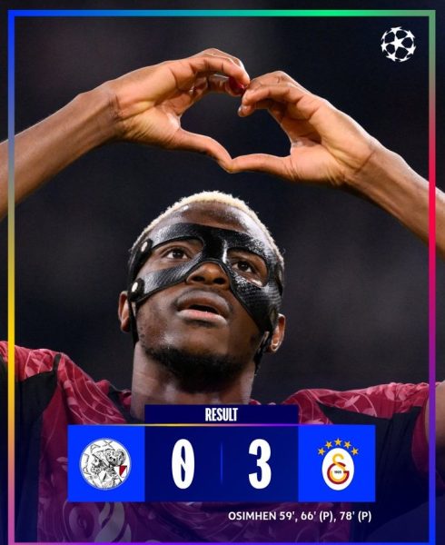 Tripleta de Osimhen, triunfo visitante de Galatasaray. Davinson Sánchez titular. Foto tomada de @ChampionsLeague.