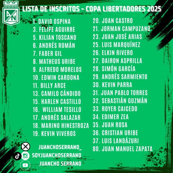 Lista de jugadores inscritos por @nacionaloficial para la fase de grupos en la #Libertadores 2025.
