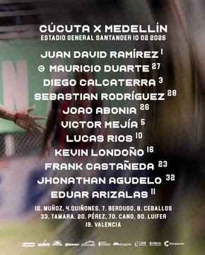 Nuestro XI INICIAL contra @DIM_Oficial. @Cucutaoficial.