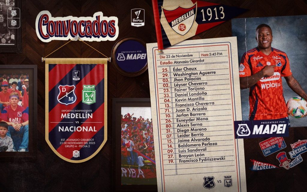 *Noticias positivas por las toldas del Independiente Medellín. El equipo Sub 20 se coronó ayer campeón de la Super Copa Juvenil, luego representará al país en la Conmebol Libertadores Sub 20 del 2026. / Y de cara al clásico con DIM «local», para efectos de la taquilla, recuperó al arquero Washington Aguerre y al goleador Francisco Fydriszwski.