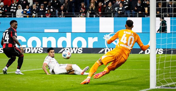¡Qué potencia! Luis Díaz habilitó a Harry Kane desde el centro en el espacio libre de la derecha. El goleador aprovechó el espacio y disparó desde más de 20 metros, y el balón entró de forma imparable por la esquina inferior izquierda de la portería del SGE. Kane volvió a demostrar su técnica de disparo única logrando su undécimo gol en la Bundesliga tras seis jornadas.