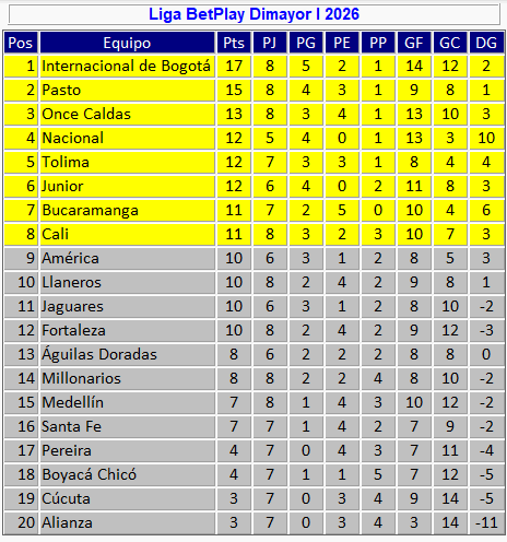 – Registro. Nacional, con la victoria sabatina, subió parcialmente al cuarto puesto, con tres juegos pendientes. Cuarta victoria en su feudo, así: 4×0 a Boyacá Chicó. / 2×1 al América. / 4×1 a Fortaleza. / 3×0 a Alianza de Valledupar. / Como visitante perdió con Cali, 1×0.