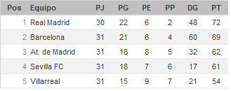 Faltan siete jornadas para definir el campeón de LaLiga Santander. Por ahora la punta está así: