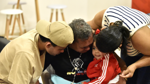 Después de los 12 días privado de la libertad, este es el primer contacto del jugador con su papá y el resto de la familia, los cuales vivieron largos momentos de angustia y ahora disfrutan nuevamente en el entorno del fútbol.