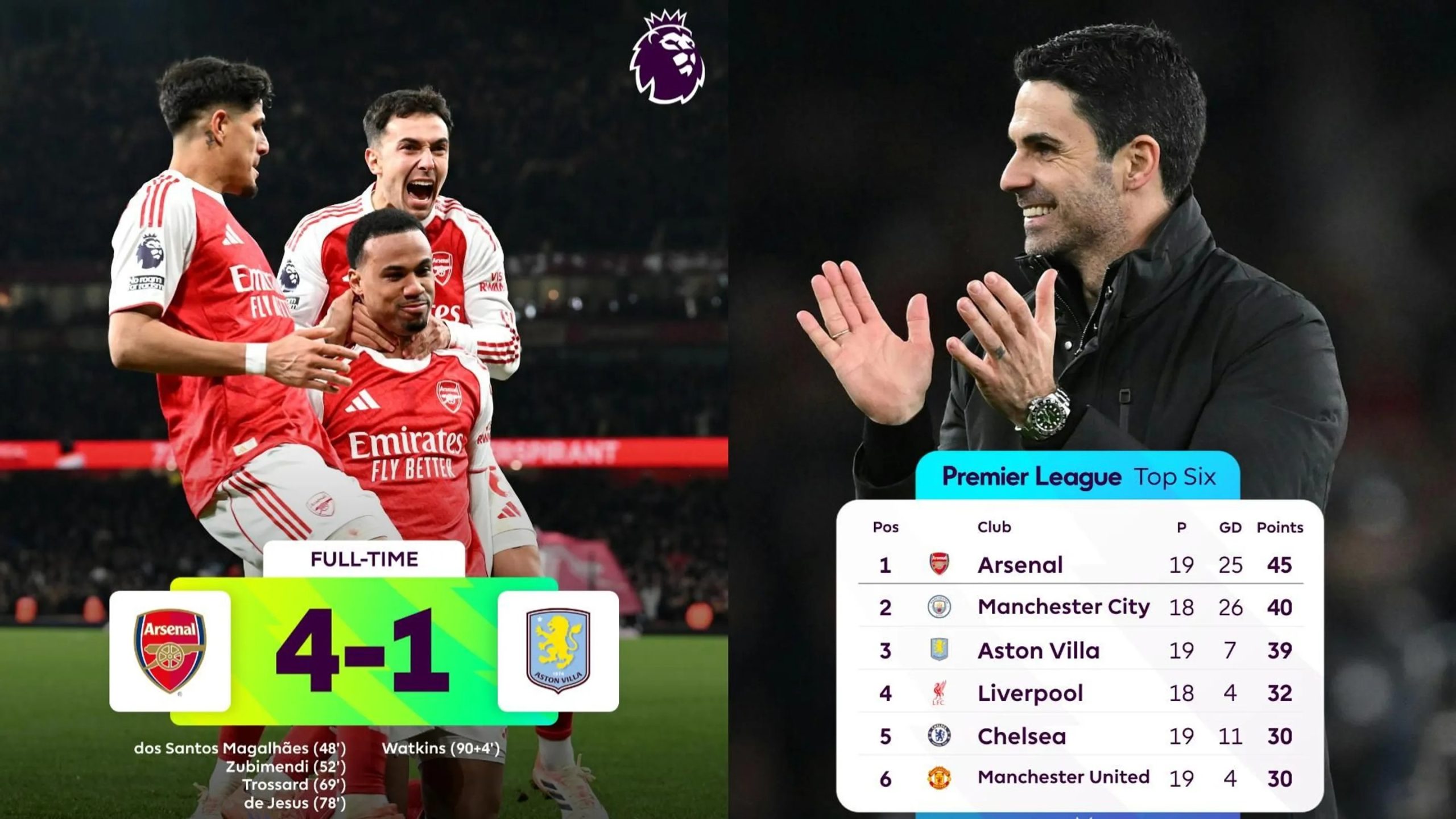 Arsenal apabulló al Aston Villa. Resultados martes