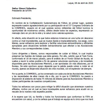 Carta de Conmebol a Infantino – Fifa