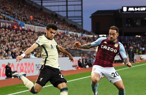 ==== -Juego: Aston Villa vs. Liverpool –Torneo: Premier League, jornada 33 –Delantera titular de Liverpool: Juega camisa 23, Luis Díaz,…
