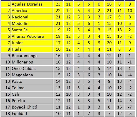 RESULTADOS – Liga – Fecha 12 – Posiciones