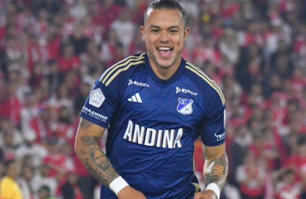 Gol tempranero, minuto 9, del panameño Ronaldo Dinolis para victoria de Santa Fe en el clásico capitalino. Foto Dimayor.com.co…