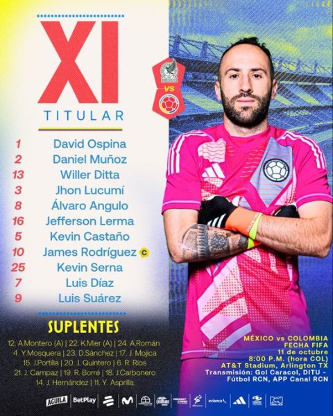 𝗧𝗜𝗧𝗨𝗟𝗔𝗥 Así formará nuestra Selección Colombia para enfrentar a en el primer amistoso de esta Fecha FIFA.