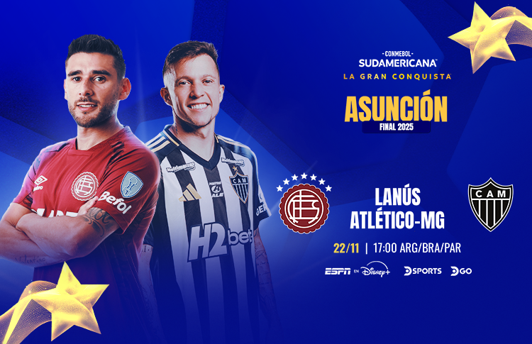 *La Gran Final de la CONMEBOL Sudamericana 2025 se celebrará por tercera vez en Asunción – Paraguay, el sábado 22 de noviembre, teniendo como escenario al histórico Estadio Defensores del Chaco. Atlético Mineiro (BRA) y Lanús (ARG) protagonizarán, a partir de las 3.00 p.m., una final que promete intensidad y talento en la búsqueda de una nueva conquista.
