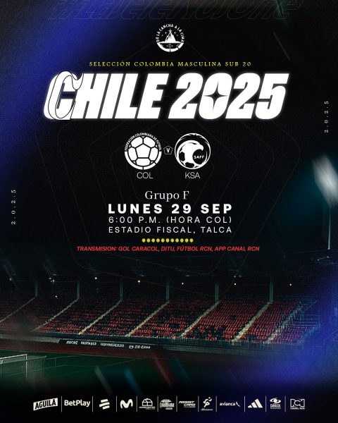 El primer obstáculo de la ‘tricolor’ en el Mundial Sub-20 será Arabia Saudita, en un encuentro programado para este lunes 29 de septiembre en el estadio Fiscal de Talca, donde el balón rodará a partir de las 6:00 p. m. (hora colombiana) y podrá verlo a través de la señal de Gol Caracol y Ditu.