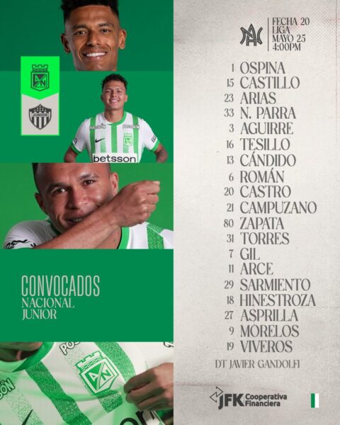 Estos son los convocados para el juego ante Junior 🟢⚪️
