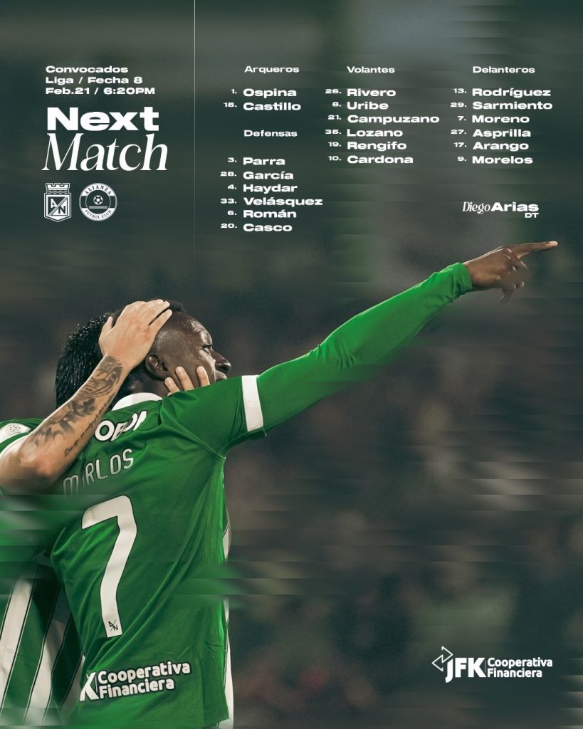 De entre todos los equipos que conforman la primera división del fútbol colombiano, Atlético Nacional es el que ha disputado menos partidos en este Apertura con apenas cuatro. Pese a ello, el Verdolaga tiene nueve puntos en su haber (G3, P1) y se mantiene cerca de los puestos de Cuadrangulares, unas posiciones en las que podría colocarse una vez juegue sus encuentros pendientes, por lo que su afición no tiene motivos para temer aún. Pese a ello, puede que la derrota ante Deportivo Cali por 1-0 en la jornada anterior – su primera en la campaña – mantenga en cautela a Atlético Nacional, que podría perder choques consecutivos de liga por primera vez desde mayo de 2025.