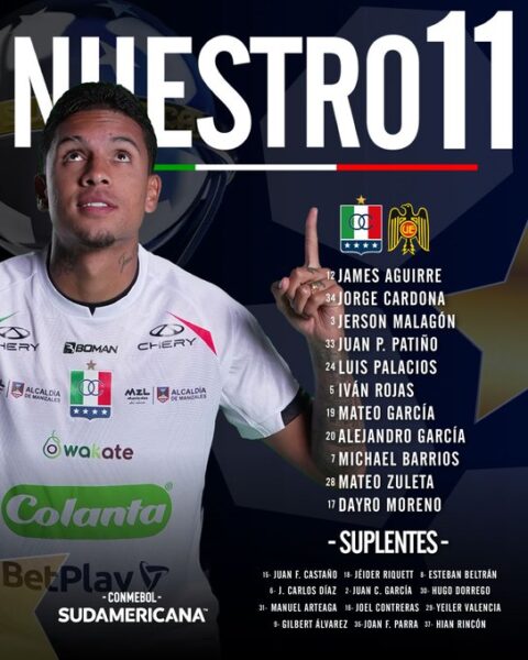 1️⃣1️⃣ Confirmado para enfrentar a #OnceCaldas por la fecha 4 de la fase de grupos de #CopaCONMEBOLSudamericana.