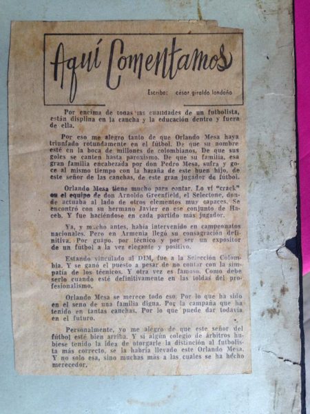 -Para hablar de Orlando Mesa tengo que tocar toda una historia del fútbol en el barrio La Floresta, porque quién no recuerda a su padre don Pedro, uno de los más grandes amantes del fútbol aficionado en Antioquia, veedor de futbolistas, con un ojo clínico para saber quién iba a llegar, como lo han sido Humberto Velásquez y aún vigente el doctor Antonio Franco Ruiz. Desde el comienzo de los años 50, ya se destacaban Bernardo Mesa, Jaime Mesa, infaltables en selecciones de la época con compañeros de barrio como Armando Agudelo, Luis Carlos Ramírez, Pedrito Alzate, “Chuchuy” Montoya, años dorados del equipo de Tejicóndor y otras empresas.