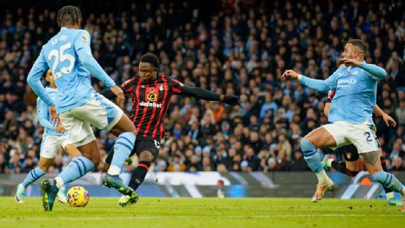 -Luis Sinisterra entró en el 72, marcó en el 74 el gol de la honrilla de Bournemouth, vapuleado por Manchester City.