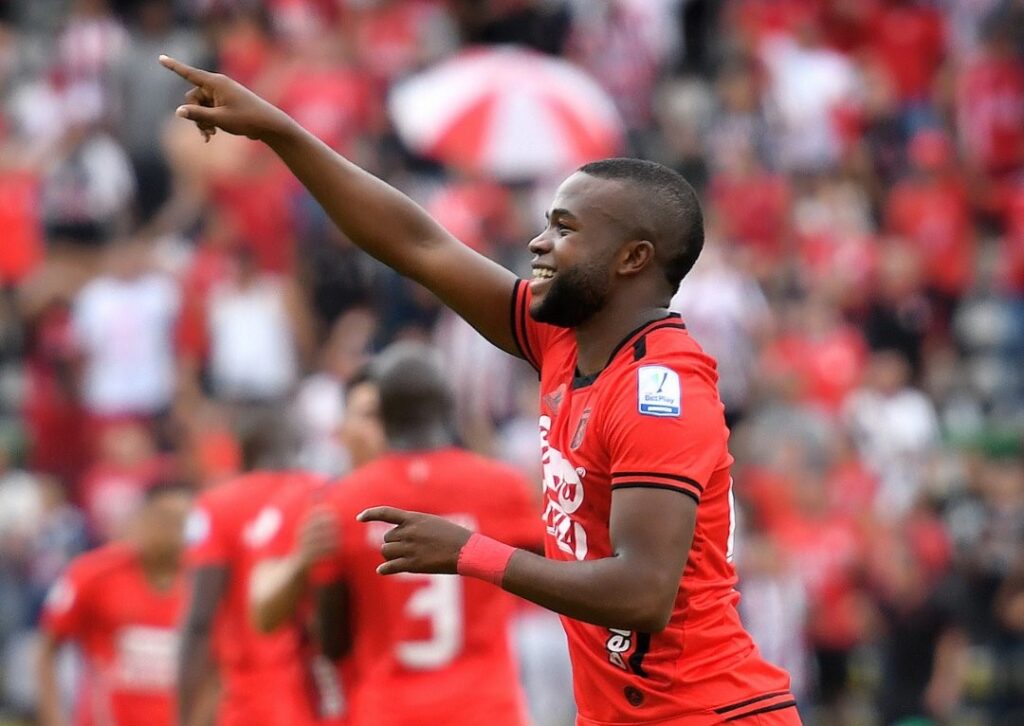 América se mostró superior desde el inicio ante Envigado. Los Escarlatas a los 15′ minutos abrieron el marcador con gol de Rodrigo Holgado, el argentino de penal convirtió tras una mano de Luis Díaz dentro del área que fue juzgada y revisada por el VAR. El delantero en primera instancia vio como el portero Parra tapó su disparo, pero luego la jugada tuvo que repetirse cuando el línea acertó viendo el adelantamiento del guardameta al momento del cobro. Holgado en su segunda oportunidad no dudó y la mandó al fondo con categoría.